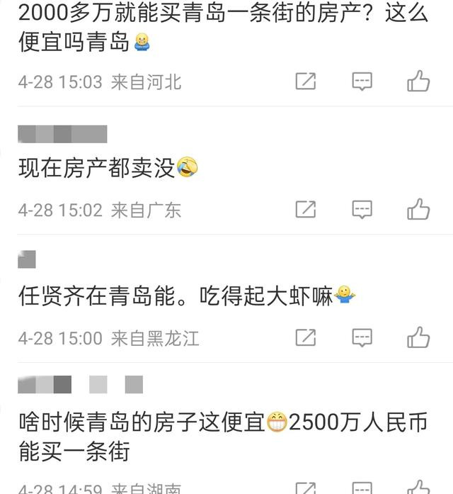 因为青岛的房价在一万多一平左右,而一条街的房产至少也得是几十个门面吧,商铺的价格比住宅的价格更高一些,一个门面再怎么也得几十平或者上百平,怎么算这2000多万都不够买下一条街啊。